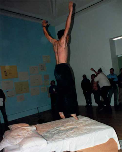 TWO ARTISTS JUMP ON TRACEY EMIN'S BED NO. 2 - Tate Gallery, London (1999)