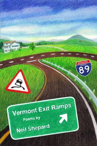 Exit ramps are segues between here and there. One might expect them to be the spaces, the lacunae—the pregnant pauses—between the poet’s words, but in this little book they’re the story, the heart of the matter as are Shepard’s quirky line breaks that enhance his poem’s sense of erratic movement. Leaving an interstate’s well-trimmed verges, exit ramps are both connectors and separators of mountains (The Greens, the Taconics) and rivers (the White and Winooski) and our state’s small town worlds; they map out the contours of these places by linking them through Vermont’s 1-91 and 1-89.