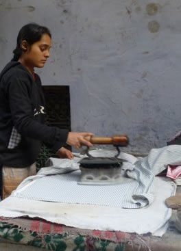 We walked down alleys that I would have never ventured down on my own and saw forgotten “havelis” or private mansions with the pentimenti of their former beauty under the grime of the present. We ate fiery street food, watched a “deed maker” ply his ancient trade with pen and paper, saw a girl press a shirt using a coal-fired iron. That night we had dinner with an Indian family, and even though I ate four helpings of everything, the wife threatened to “show me the beating stick” if I did not have more; afterward, we shot off fireworks on the roof of their house. On the way home, we got lost and found ourselves in the middle of a wedding, the groom on a white horse surrounded by drummers, dancers, a band, and more fireworks.
